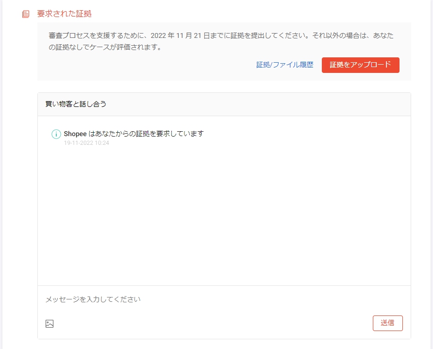 チャット上で「キャンセル」というキーワードを使うと、Shopeeから証拠の提出を求められるようです。