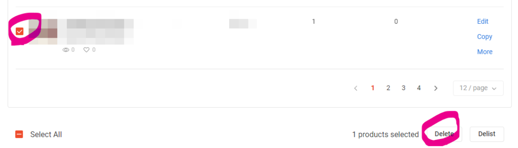削除したい商品を選択(チェックをON) → 画面右下の「Delete」ボタンをクリック