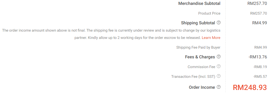 の画面で、Income Detail(収支の詳細)を確認できます。